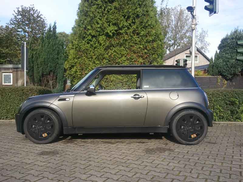 felgen: die felgen sollen mit plasti dip schwarz matt gemacht werden und an eine speiche der spoke (17zoll) soll ein orangener aufkleber mit dem mini emblem (oder mini schriftzug da bin ich mir noch unschlüssig). das ganze angelehnt an das felgendesign von sidney von den ps profis (vllt kennt ihr die felgen von seinem beetle wenn nicht mal bei google sidney vw beetle eingeben)