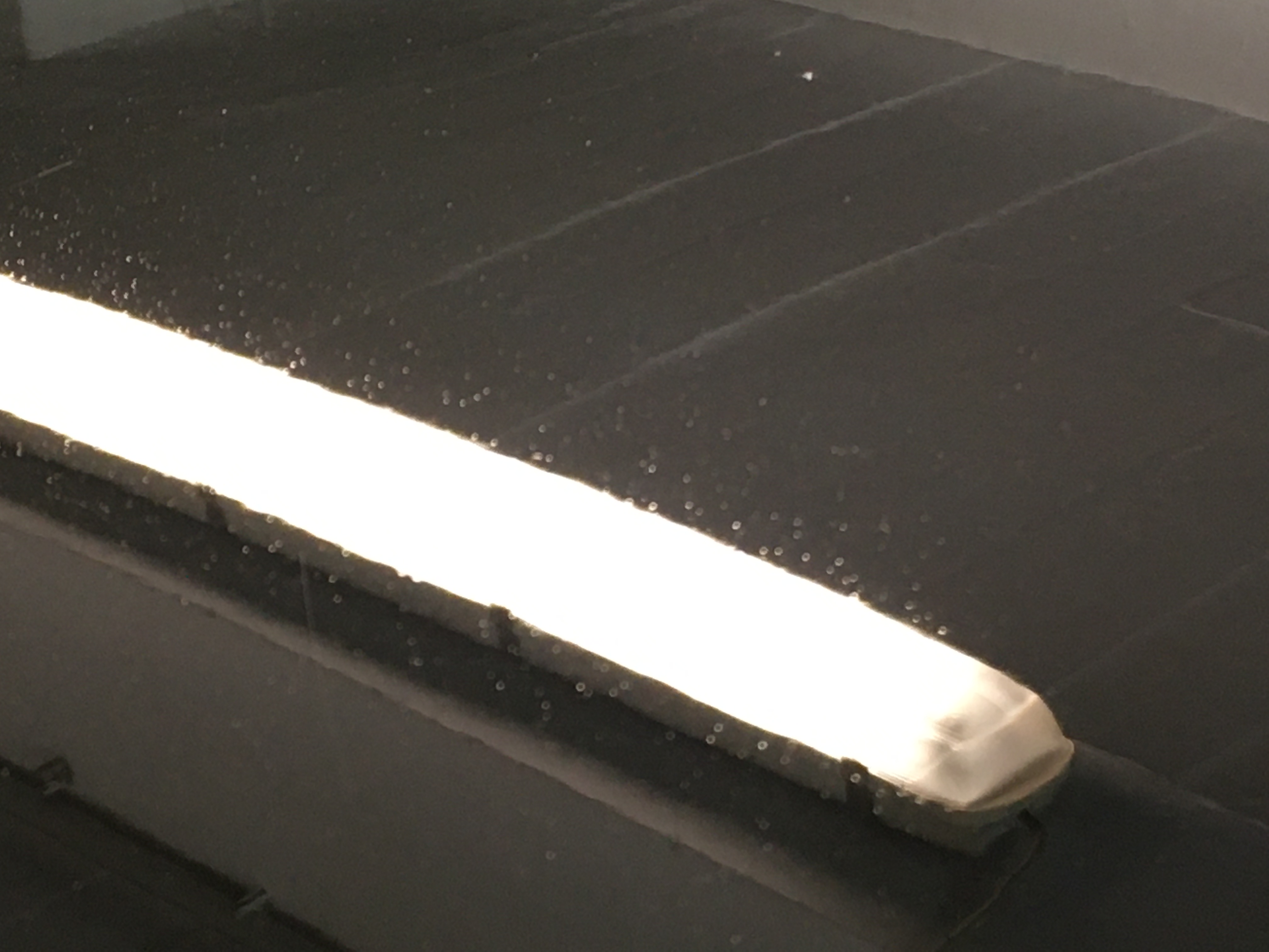 Da gab es fast keine Kratzer mehr, auf denen die Handkamera fokussieren konnte. Somit ist die Decke der Halle so deutlich zu sehen, die eigentliche Lackoberfläche jedoch nicht. Perfekt wie Neu ist es natürlich trotzdem nicht geworden. Der Versuch dazu hätte wieder einen immensen Mehraufwand bedeutet, der, wie schon mal erwähnt, in keiner Relation zum Fahrzeugwert steht. Viele Kratzer konnten entfernt werden, einige sind noch mehr oder weniger sichtbar. Die unscharfen Punkte bei der Spiegelung der Deckenbeleuchtung geben einen Hinweis darauf, was in Natura leichter zu sehen ist: Irgendetwas - Harz? Oder... Achselzucken - hat sich besonders am Dach schon so in den Lack reingefressen, dass es sich nicht so ohne Weiteres entfernen lies. Die Punkte sind durch die Politur nun nicht mehr so sehr spürbar wie zuvor, aber doch noch immer erfühl- und sichtbar. Das wird ihm nun bleiben. Dafür ist mir jetzt erst im Sonnenlicht ins Auge gestochen, dass Midnight Black einen wunderbaren Metallic-Anteil hat.
