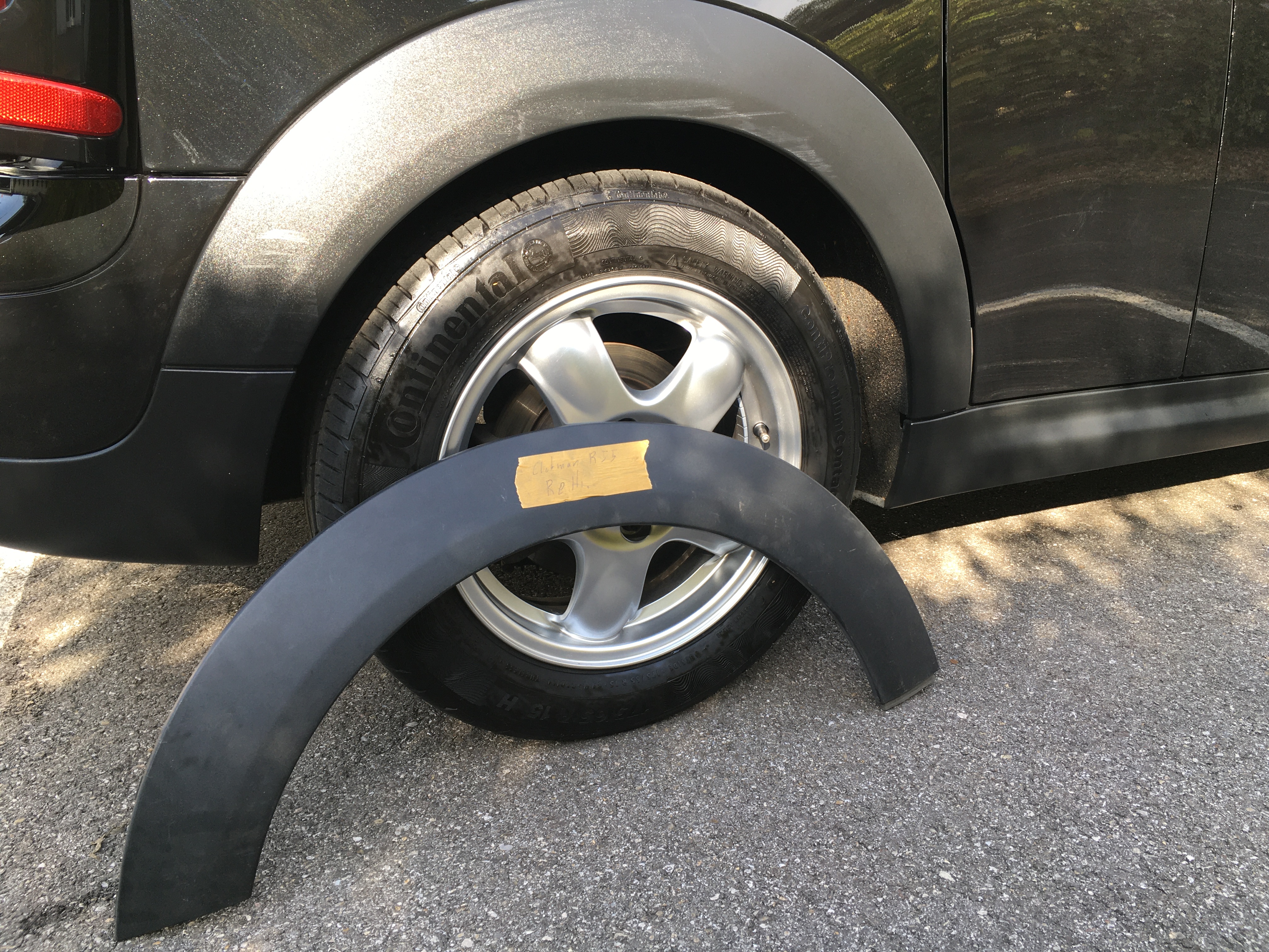 Eines noch: Nachdem der R55 nun seine endgültige Aufbereitung erhalten hat, ist mir eine gebrauchte Radhausblende zugeflogen. Diese wird irgendwann die rechte hintere Blende ersetzen, die doch ziemlich unschön abgeschürft ist.