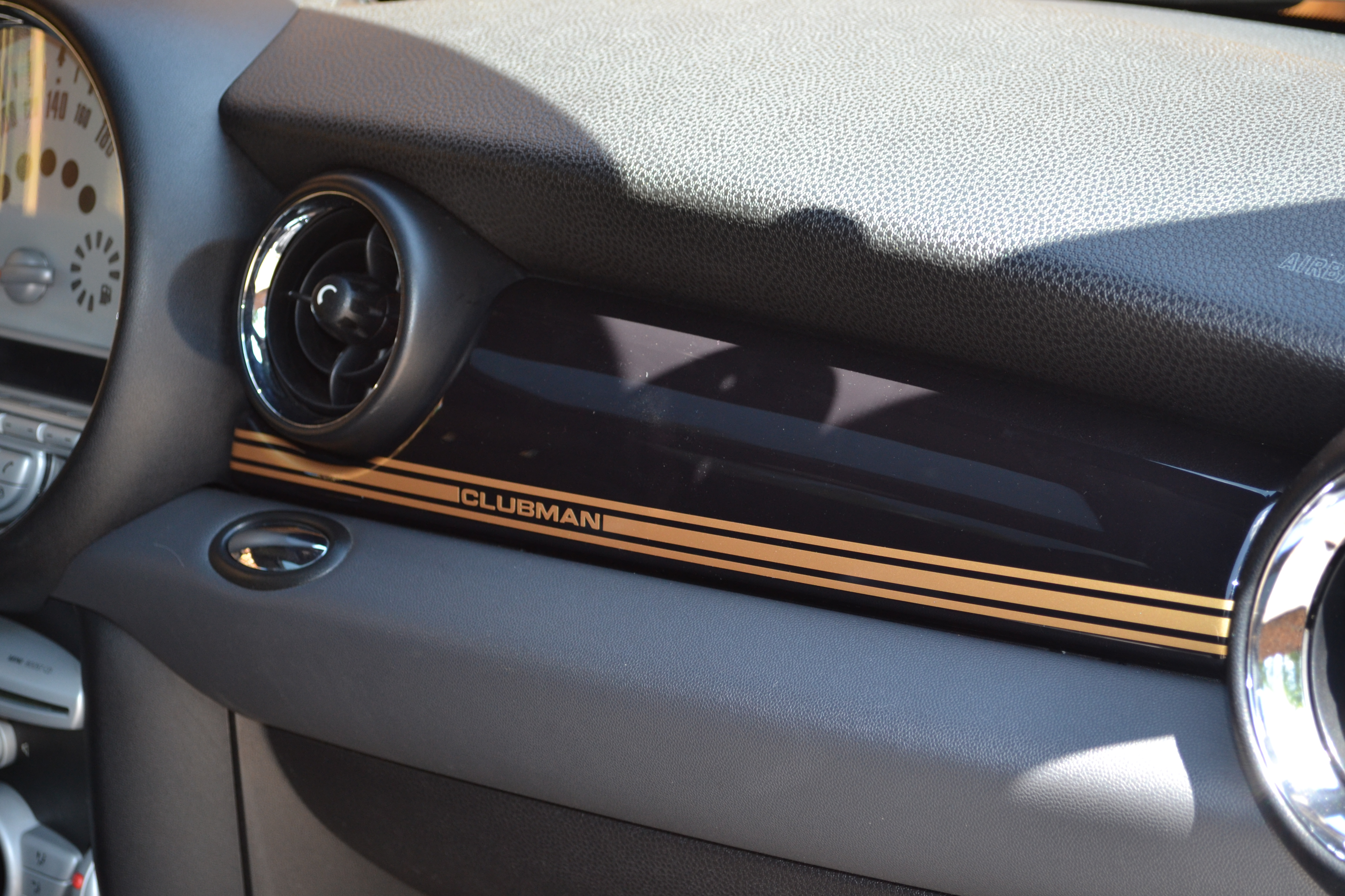 Bei den Sportstreifen auf der Seite wollte ich mich Design-technisch am Original aus den 1970er Jahren orientieren, jedoch macht "MINI 1275 GT" natürlich keinen Sinn. Ebenso gefällt mir die einfache Änderung auf den korrekten Hubraum meines Cooper, so wie es MINI beim F56 Sondermodell mit "MINI 1499 GT" vollzogen hat, auch nicht. 1598 ist so eine unrunde Zahl. Die Bezeichnung GT passte mir ebenfalls nicht. Einfach Cooper zu schreiben war mir dann auch zu Trivial. Gibt es davon doch bereits verschiedenste Varianten für die New Generation MINI. Ich entschied mich dafür, den R55 zu huldigen und fixierte die Idee einfach "Clubman" zwischen die Linien zu schreiben. Onkel Google hätte mir zumindest keine ähnlich geartete Umsetzungen gebracht.