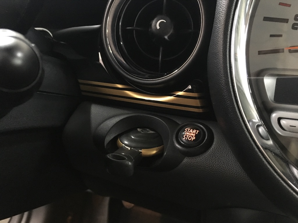 Der in dem Buch dargestellte 1275 GT war also Schwarz. Jedoch hatte der Classic Mini ja bekanntermaßen viele Chrom-Applikationen. Zierleisten, Stoßstangen, Fensterrahmen, Kühlergrill, Wischerarme, Außenspiegel* usw. welche einen schönen Kontrast zum schwarzen Lack herstellten und die Form des Blechkleides betonten. Dieser hatte jedoch zusätzlich noch die in diesem Jahrzehnt beliebten Sportzierstreifen auf der Seite. In goldener Farbe! Und ebenso waren die Felgen in Gold lackiert.