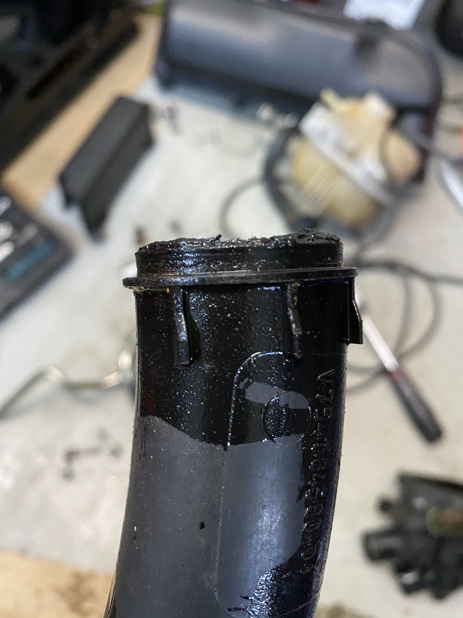 Hier einer der Übeltäter: der Teil des Wasserrohres, welches zur Wasserpumpe geht. Der Flansch ist abgeschert, konnte aber als Ganzes aus dem Gehäuse entfernt werden.