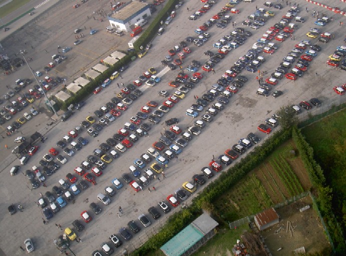 Misano adriatico, Renngelände, mit viel Gehupe und Riesenfahne rein und freundlichst Richtung P 10 gelotst... Wiese, also nochmal raus, eine bis zu diesem Zeitpunkt uns unbekannte Minifahrerin hat reserviert auf P 4, schon besser... Bekanntmachung und das ganze WE zu fünft unterwegs. Rundgang durchs Riesengelände, bischen Party und schlafen...