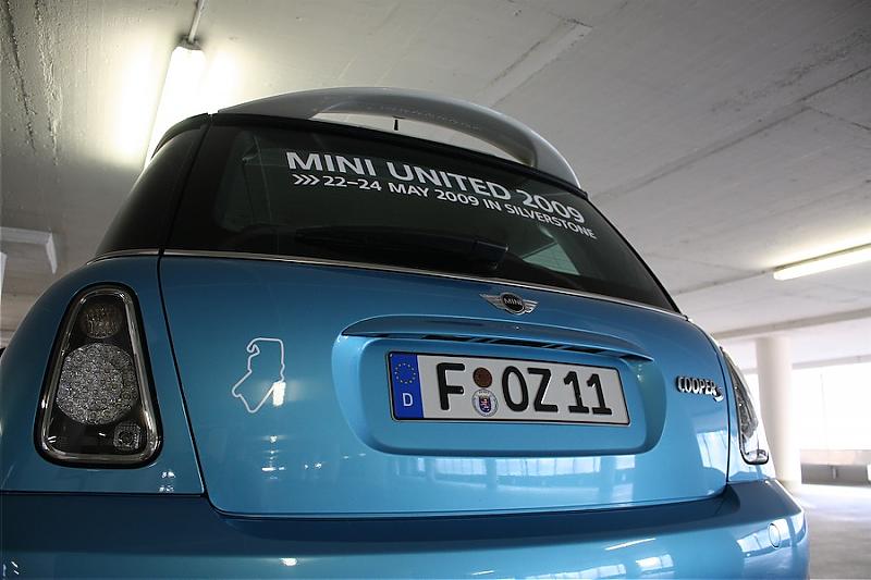 Ja, es gibt mittlerweile auch Heckscheibenaufkleber "MINI UNITED 2009" mit dem zusätzlichen 50er Aufkleber. Frag doch mal bei Deinem Freundlichen Wink