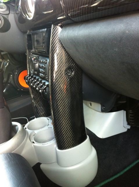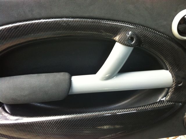 Für die Downtubes und Türeclipsen habe ich einfach die originalen von Mini benutzt, schwarz lackiert und dann mit Carbon laminiert.