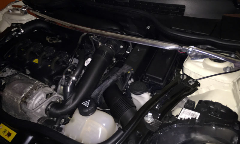 und die JCW Domstrebe verbaut, ich hasse seitliche Wankbewegungen Smile