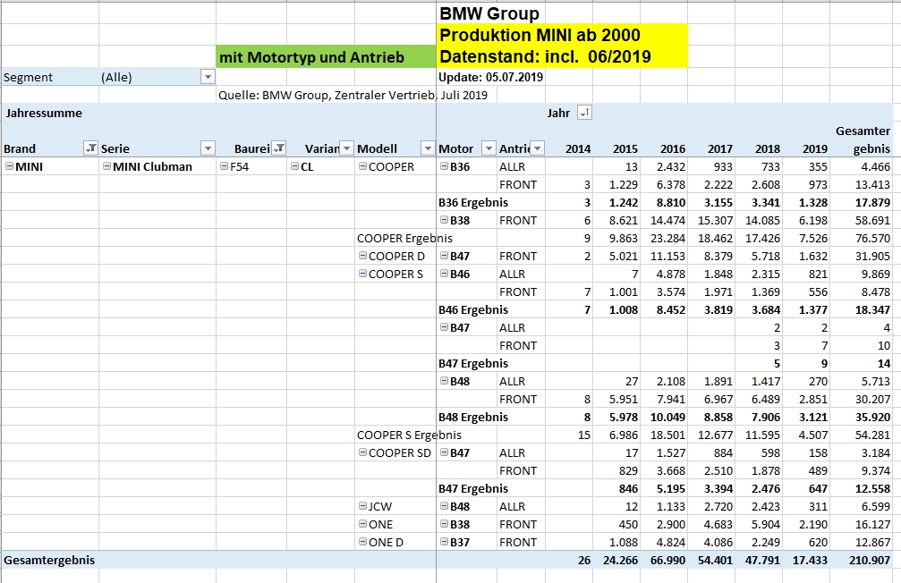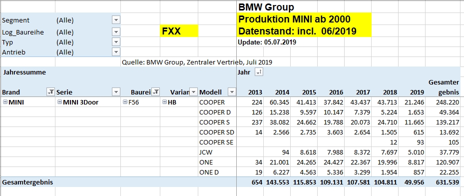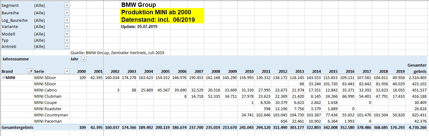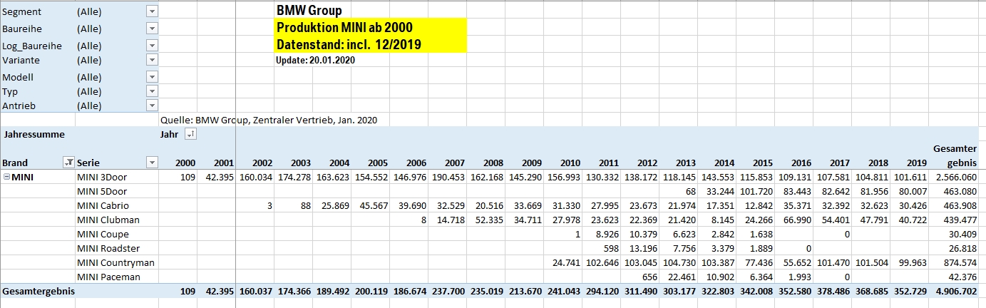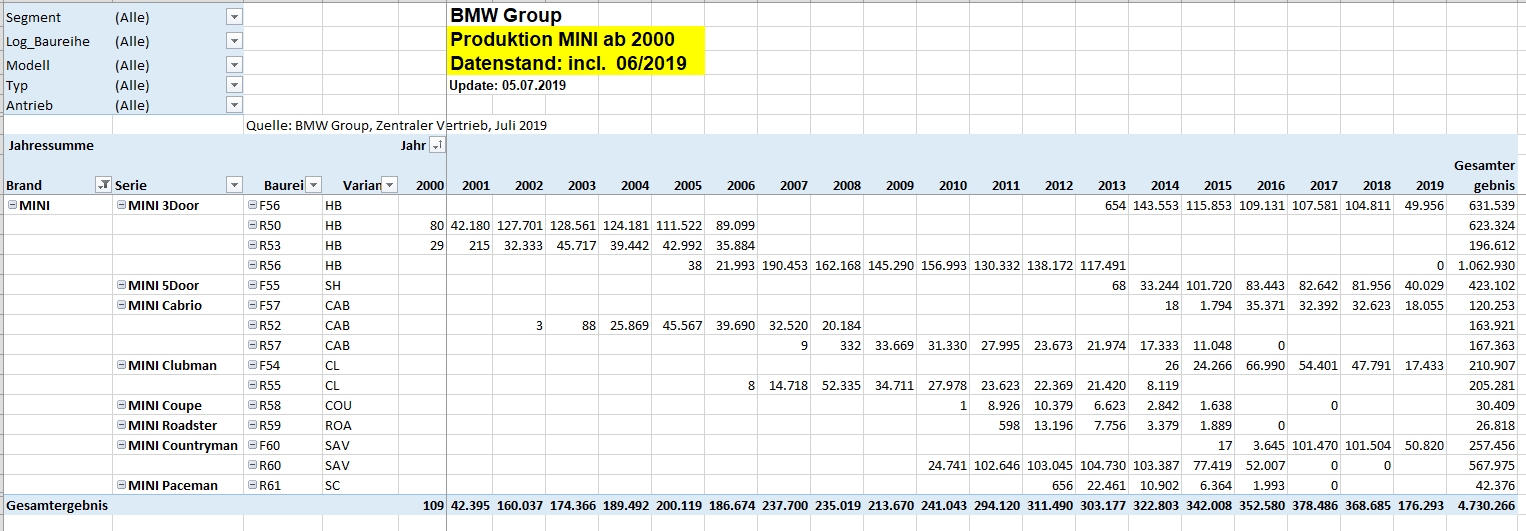Spargelstecher34 schrieb:Sind das die Produktionszahlen für alle R55 seit der Einführung des Modells ? Halt auf die Länder aufgeteilt.