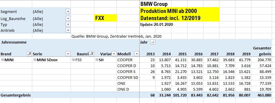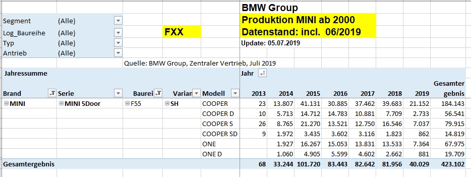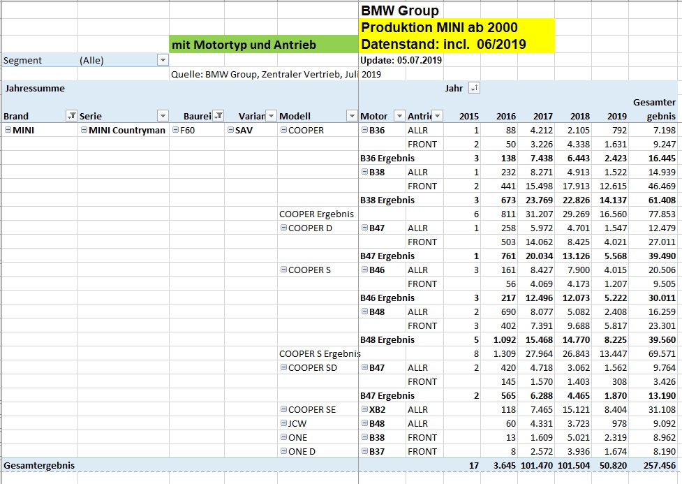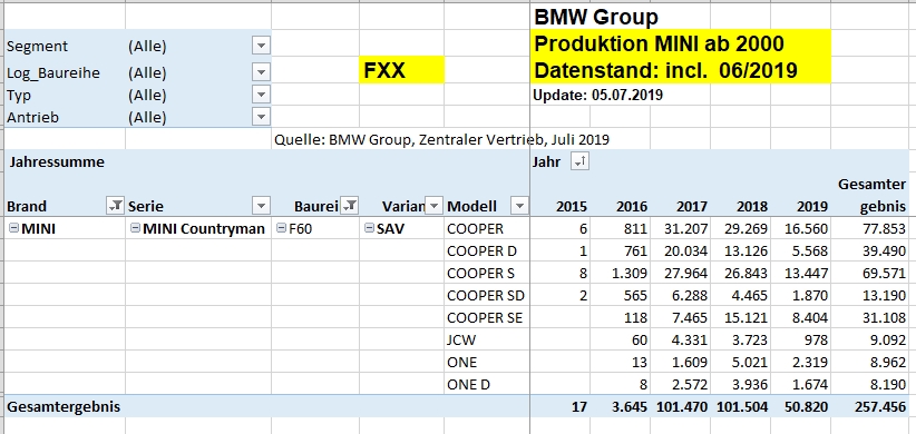 Sind das die Produktionszahlen für alle R55 seit der Einführung des Modells ? Halt auf die Länder aufgeteilt.
