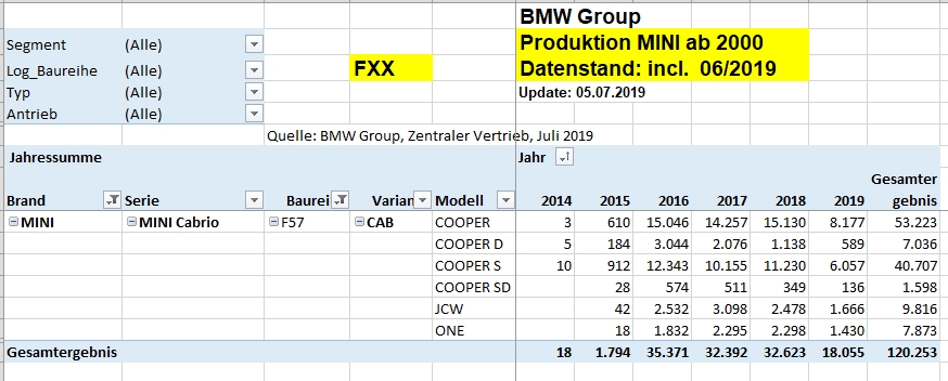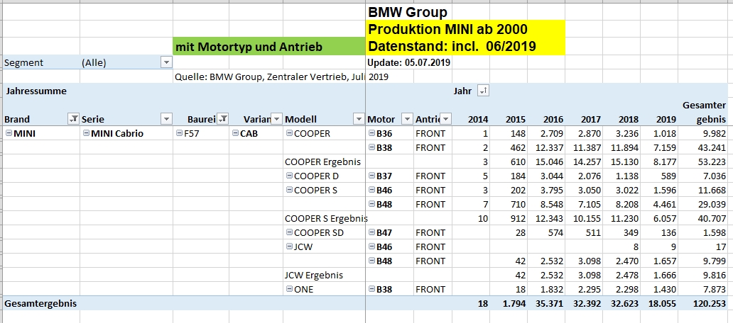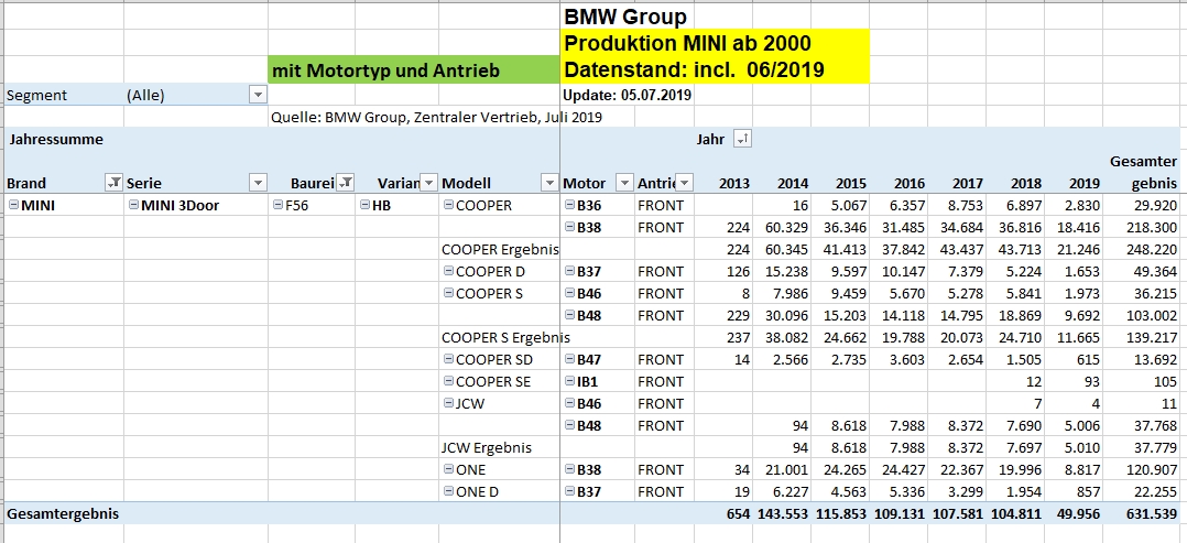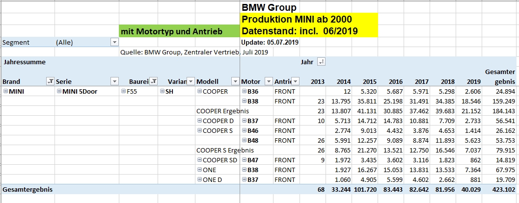 mit dem heutigen Update vom 31.07.2019 gibts die Tabellen Stand 07/2019 (Produktion incl. Juni 2019) in Post #3.