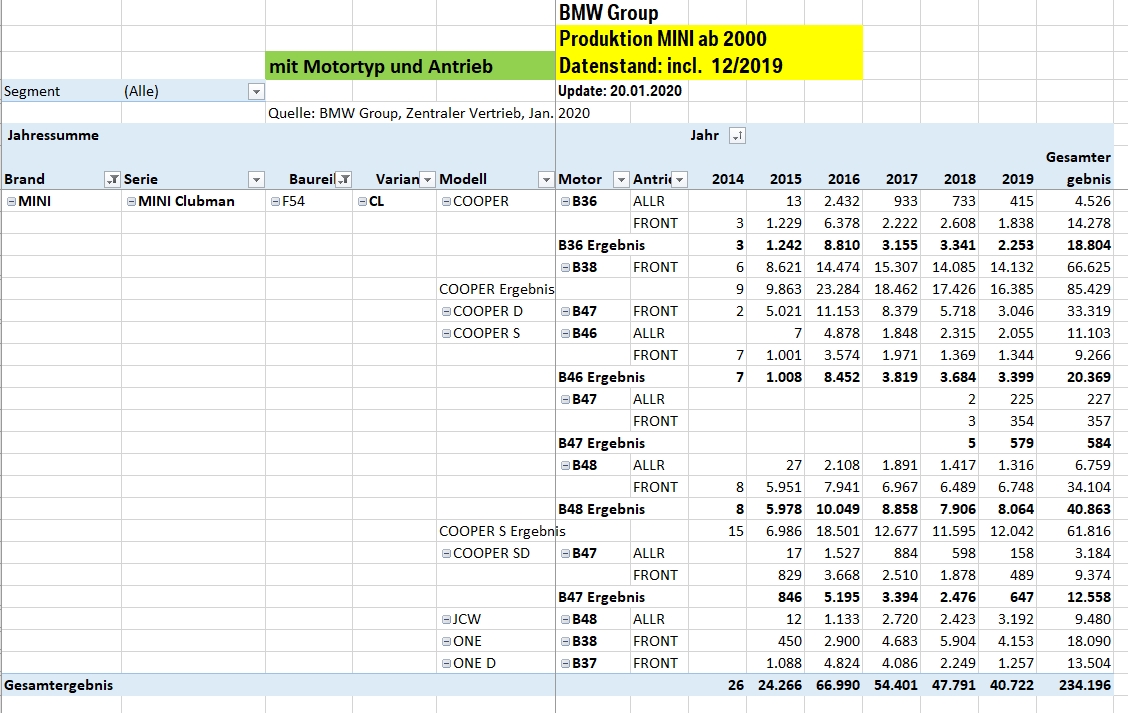 mit dem heutigen Update vom 01.02.2020 gibts die Tabellen Stand 01/2020 (Produktion incl. Dez. 2019) in Post #3.