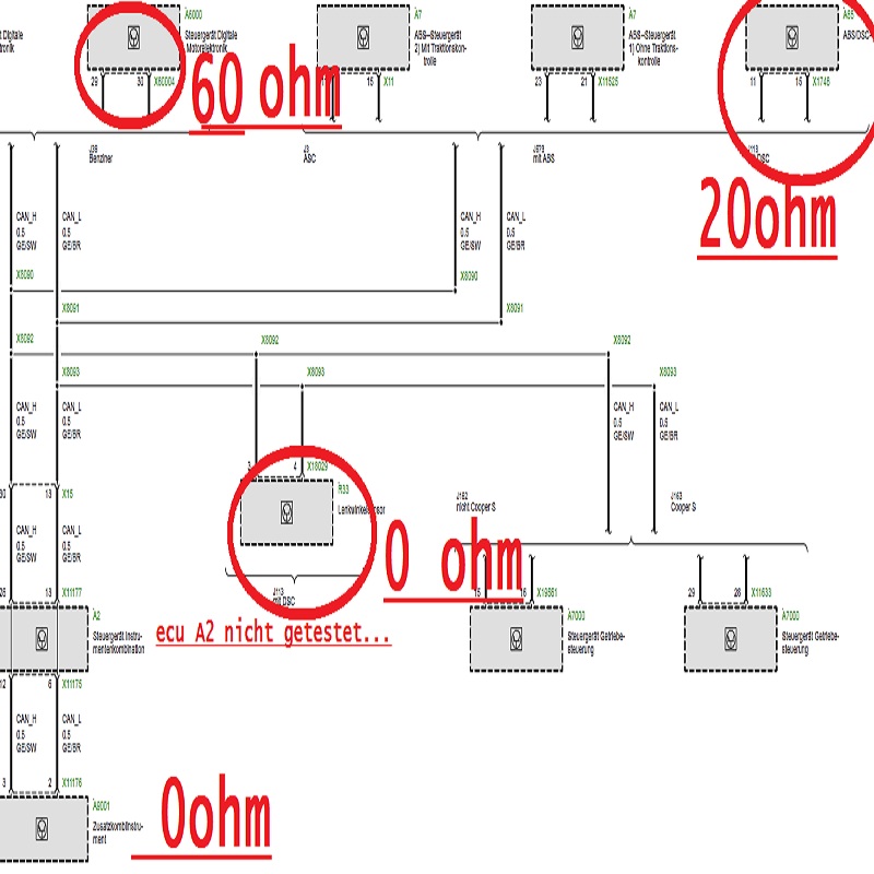 Da die ECU und der Tacho je 120 Ohm haben sollte das somit tatsächlich 60 Ohm ergeben. Zumindest ist das das, was ich als Hobbybastler in Kürze aus dem Bentley lesen konnte.