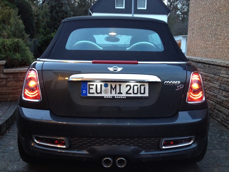 Also weil ich hab den Chrom-Heckklappengriff (will den noch tauschen gegen einen in Wagenfarbe) und dann würd ich die schwarzen rahmen vllt drauf machen ?!?!?