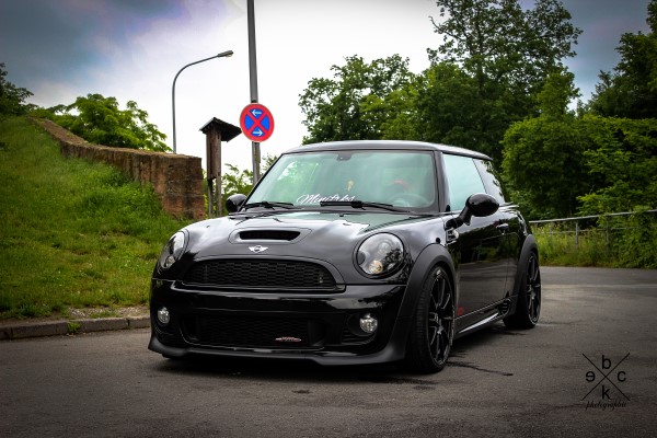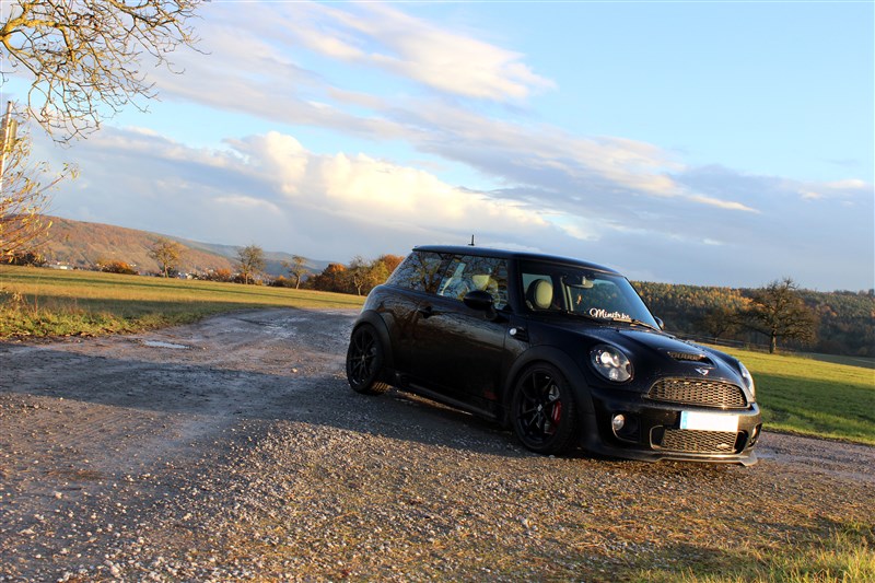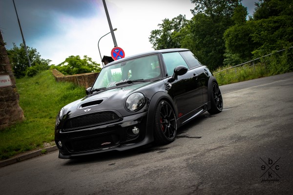 Wir haben uns gegen original Mini Felgen entschieden und haben uns Sparco Trofeo4 in schwarz Matt entschieden. Die größe der Felgen ist 7,0 x 17 Zoll ET37 mit ner 205/45/R17 Bereifung.