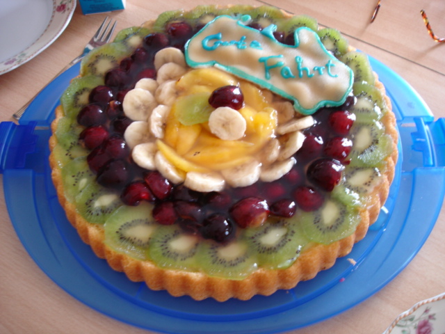hallo ihr beklopptes volk, da sind wir wieder. endlich hat die minilose zeit ein endeYeah! und es ist wiederSonne angesagt. als wir heute gegen 13.30 uhr in rostock ankamen, waren kalle und helga da um uns moralische unterstützung bei der auslieferung zu geben. mann haben wir gestaunt. ist das schön, von so vielen vollverSonne ten umgeben zu sein. ach haben wir euch alle lieb. und das schärfste war, es gab eine MINITORTE. liebe helga, lieber kalle, auch wenn ihr uns das ganze abendbrot weggefressen habt, es war eine riesen überraschung, dass ihr extra zur auslieferung gekommen seid.Top danke und wir freuen uns im august, dann euren kühlschrank leer zu fressenEssen