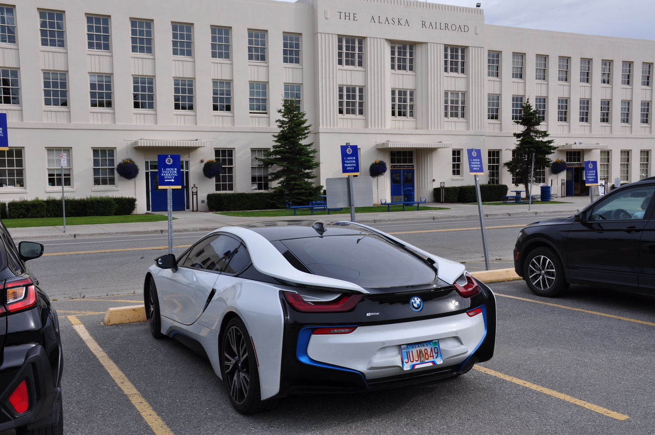 Der i8 musste dazu, stand am selben Parkplatz und dürfte eines der seltesten Autos in ganz Alaska sein. Ach ja, Alaska ist 2,3 Mal so groß wie Texas, aber superdünn besiedelt.