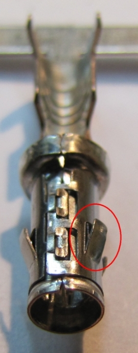 Bei den Kontakthülsen ist zwar etwas Spiel zwischen Hülse und Steckergehäuse, um die Nasen mit einem sehr flachen Werkzeug zurückzudrücken (ich habe es mit einem 3mm breiten Streifen Stahl von einem stählernen Bandmaß versucht und mit viel Fummelei geschafft), aber bei den Kontaktstiften -> no chance.