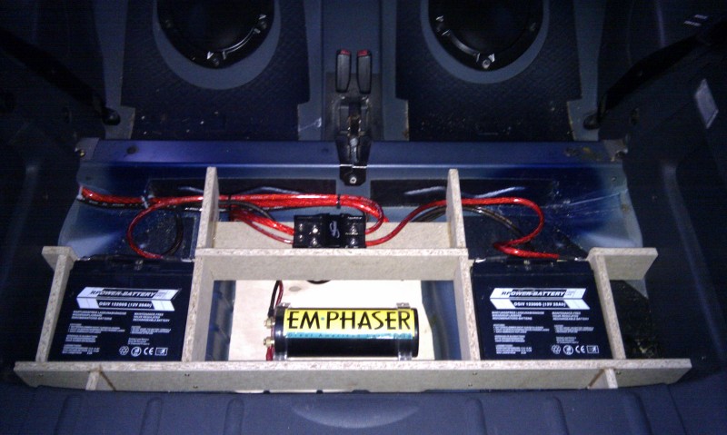 -> 55Ah + 2x20Ah = 95Ah + 1 Farat Elko (hatte ich noch rumliegen) im Mini Top