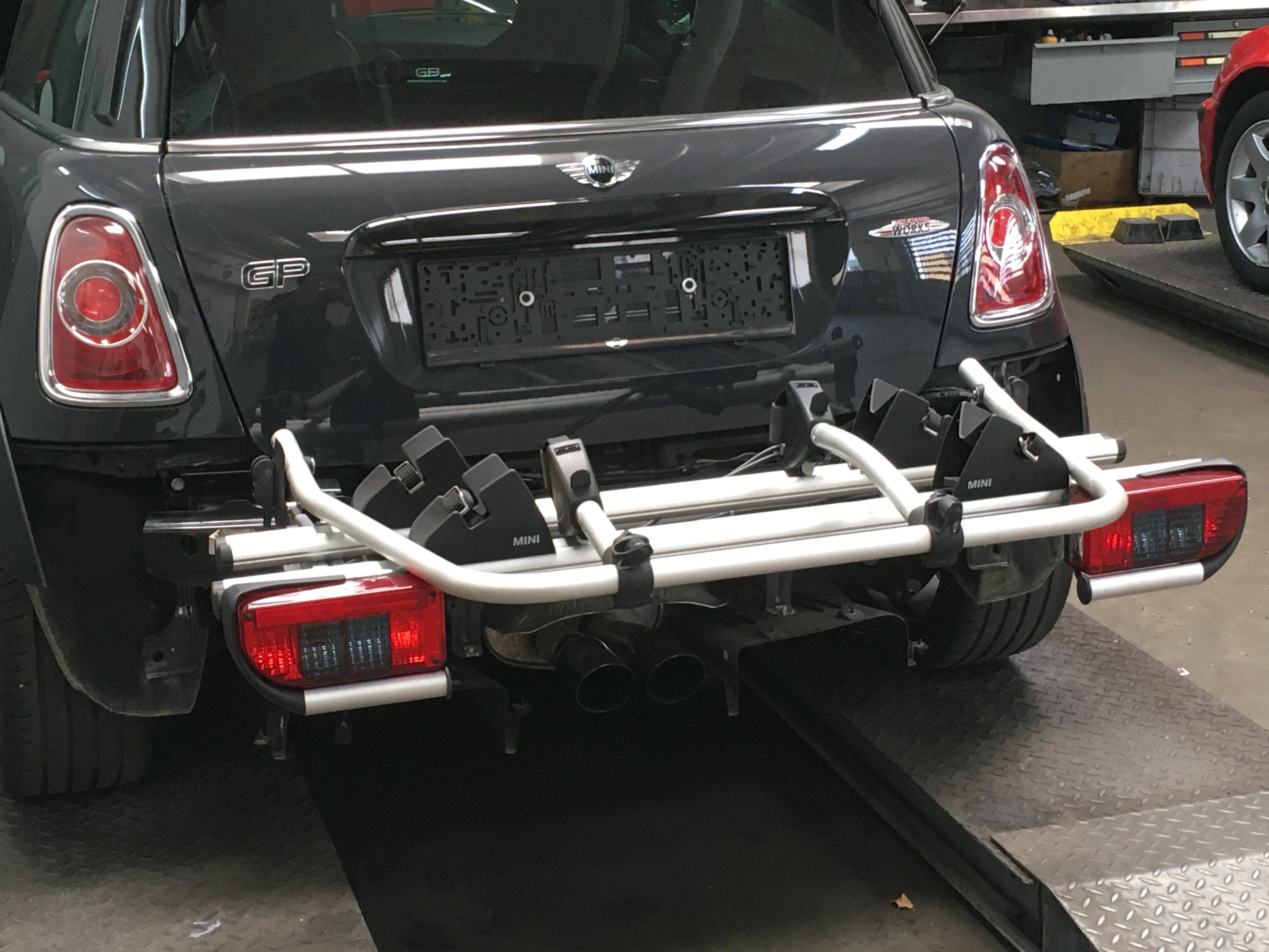 Nun hatte ich also einen kompletten Einbausatz für einen R56-Fahrradheckträger … und da waren  sie schon … meine drei Probleme Augenrollen ! Es war ja nicht so, dass ich das nicht vorher wusste. Denn das waren auch die Dinge die ich ursprünglich dem Anbieter als Infos für sein Inserat übermittelte und über die ich mich mit meinem Mechaniker austauschte bevor ich den Kauf tätigte. Denn die Herausforderungen vor denen ich … bzw. mein Mech nun stand, waren folgende: