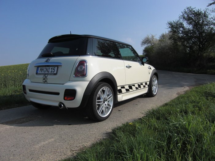 Ich hab ja vorne noch die gelben Blinker drin und der rest ist jetzt weiß. Von hinten schaut der MINI jetzt weißer als als von vorne Sonne
