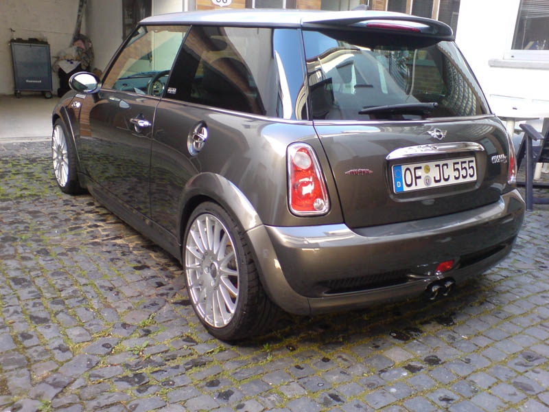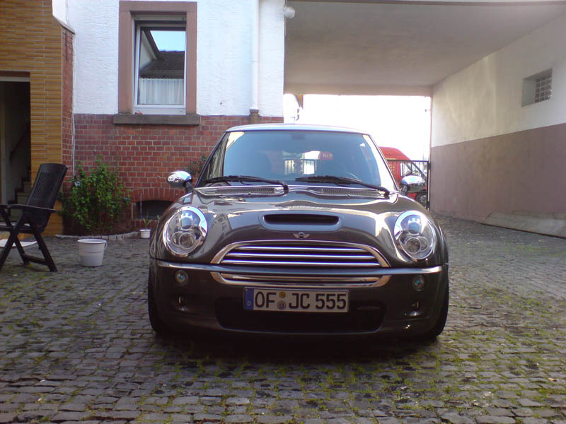 achja: hatte das ganze vorher auf hochglanz poliert, sah zwar goil aus ( bling bling Devil! ) hat aber irgendwie nicht zum gesammtbild gepasst Head Scratch -> also wieder angeraut und lackiert Smile ( selbe farbe wie bremssättel Wink )