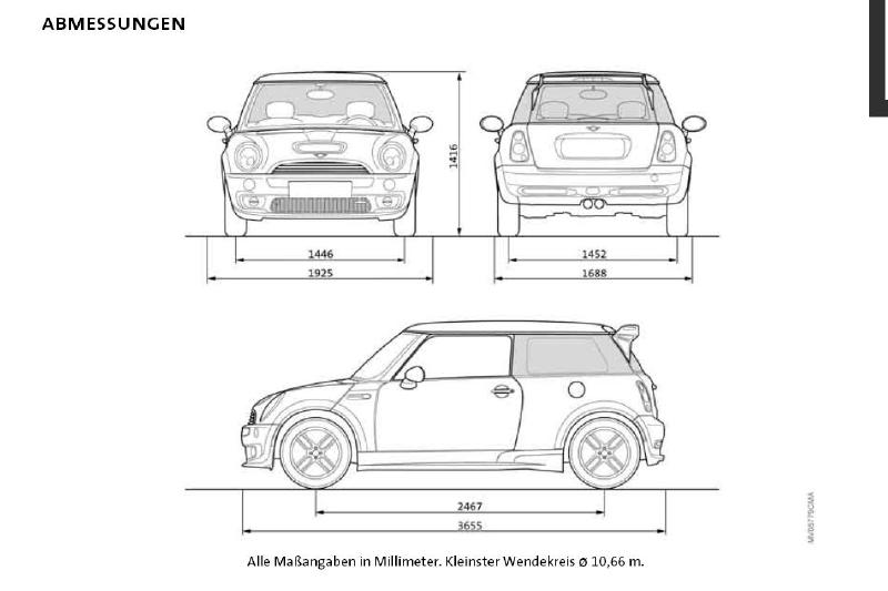 fahrzeuglänge : 3626 (Cooper S: 3655) passt (trotz anderer schürzen)