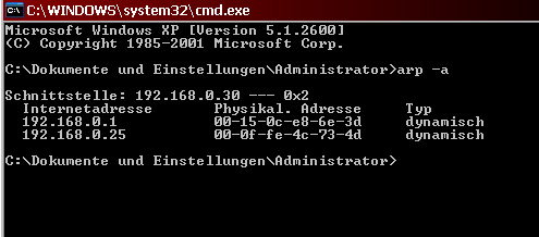 Siehst du die ARP/MAC-Adresse des Routers mit "arp -a" in ein cmd-box?