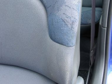 Unter dem Innenspiegel gibt's doch bestimmt überflüssigen Stoff! Den Kleber würde ich dann mit einer Spritze genau auf das Loch setzten und dann den Flicken drauf, sonst hast Du nachher einen Kleberfleck und das sieht genauso blöd aus.