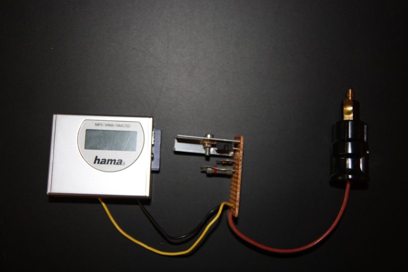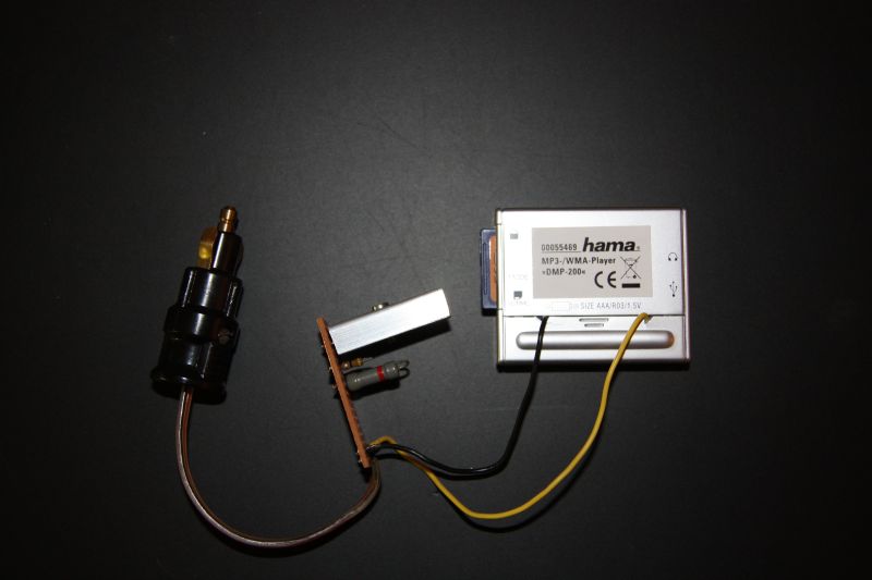 Für meinen roten Zwerg hab ich mir jetzt erst mal auf die Schnelle eine Billiglösung zusammengebastelt. Den Hama DMP-200 gab es für 17 € inklusive 2GB Speicherkarte. Dafür hab ich mir dann noch einen Spannungswandler zusamengelötet (LM 317) und die Kontakte mit einem Holzdübel ins Batteriefach verfrachtet. Der Kopfhörerausgang ist mit dem AUX-Eingang verbunden und liefert einen halbwegs passablen Klang (bezogen auf den Preis). Allerdings liefert der Zwerg keine Titelanzeige (ID3-Tags) und speichert die aktuelle Abspielposition nur, wenn er explizit am Gerät abgeschaltet wird.