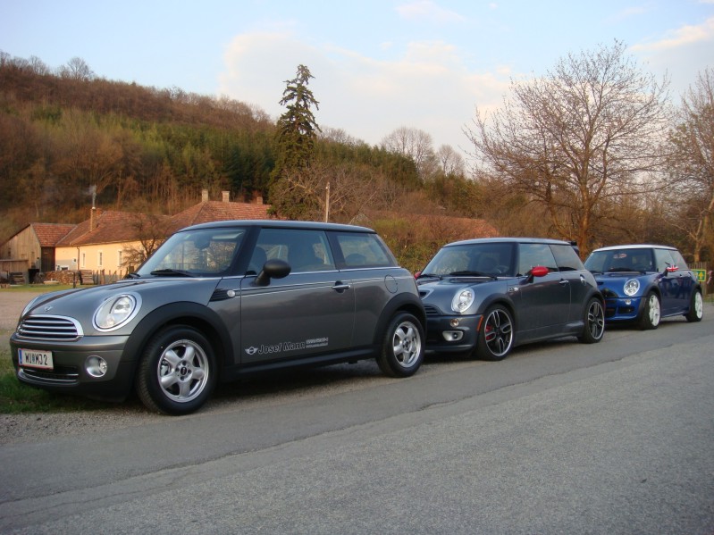 Familie MINI hat vorzüglich gespeist! Sabber Im 3er-Pack ging es hinter ein paar Schleichern Püh! auf der Bundesstraße zu Italiener! Die wunderschön farbverlaufende Kombination sicher und präsent geparkt