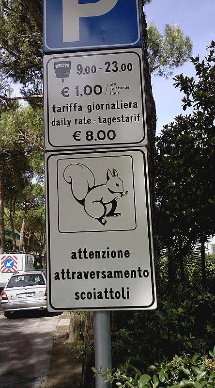 attenzione attraversamento scoiattoli = vorsichtig über Eichhörnchen