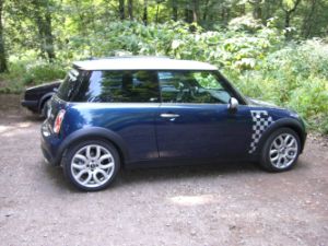 Anbei sind mal ein paar Fotos von meinem kleinen Flitzer (MINI Cooper Checkmate, Bj. 04/06). Die wurden bei der Probefahrt gemacht. (Daher auch das "fremde" Kennzeichen.) Aktuellere habe ich leider noch nicht machen koennen, da ich keine eigene Digitalkamera habe und ich auf die Gunst des "Verleihers" angewiesen bin. Aber man kann hier ja auch was erkennen. Zwinkern