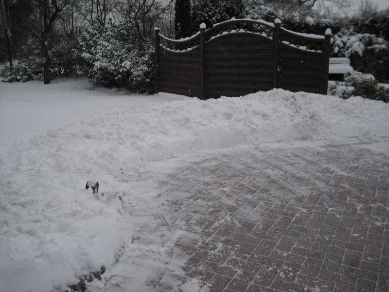 Lady schrieb:So sah der Hof hinterher aus. Der Wall an der Straße lässt sich auf den Fotos nicht so recht erkennen. Aber die aufgetürmten Schneeberge sindd 50 bis 80 cm hoch. Das entsteht halt, wenn man 200 qm Hof von Schnee befreit