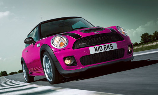 schwarz mit pinknen bonnets, pinkne spiegelkappen, pinkne felgen, pinkne hutze, dach in pink — das sieht doch bestimmt Sonne aus