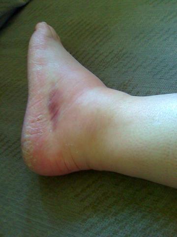 Mit mein Käffchen in der Hand bin ich dann wieder nach draussen gegagen, um in der Einfahrt vor dem Häuschen mich an die schrägheit der Einfahrt zu verschätzen, und beim kleinen Sprung mein linken Fuß umgeknacht ist Stumm. Aua! Also, 10 min. später konnte schon wieder drauf stehen und hüpfen, und ich wollte ja nicht den Fahrt auf den Nordschleife verpassen Devil!. Also schnell noch mal eingecremet, kurz sogar den Kompresse der Ossies drauf (wow, so vorausschauend!), und ab zur Schleife!