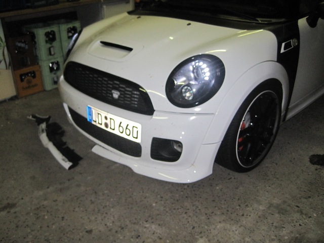 So nun gehöre ich leider auch zu denjenigen, bei denen sich die Frontlippe verabschiedet hat! So ein absoluter Mist, dass kann doch wirklich nicht sein! Ich habe eine Mail an Mini München geschrieben inkl. Bilder und bin mal gespannt was die mir am Montag für eine Antwort zurückschreiben. Ich hoffe doch sehr, dass ich meine Lippe + Radlauf ersetzt bekomme!!! Böse!