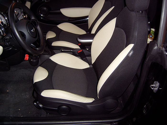 Fahrer und Beifahrersitz (Stoff-Leder-Kombination) von cremeweiss in schwarz ändern lassen
