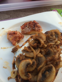 Zwischendurch habe ich 2 mal gemoppt. Dazu habe ich eine Mischung aus Ketchup, Dijon Senf, Honig, Tabasco und Worcester Sauce genommen.