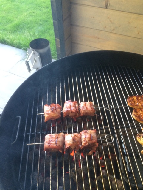 Jetzt die Mine am Grill für indirekte Hitze (ca150C) platzieren und auf eine Kerntemperatur von ca 70C ziehen. Das hst bei mir ca 50 Minuten gedauert.