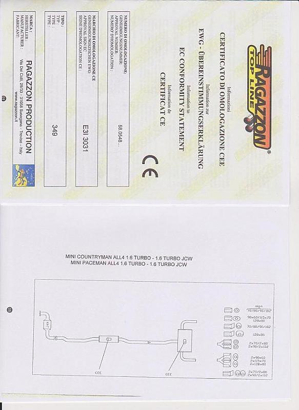 Der Vorschalldämpfer passt mit einen Reduzierstück problemlos zum Original ESD. Ob diese Kombi erlaubt ist oder nicht kann ich leider nicht sagen. Auf den beiden Schalldämpfern befindet sich die Nummer der EWG-Übereinstimmungserklärung.