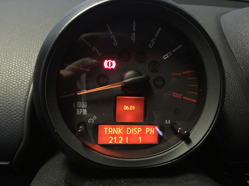 1. Rückstellknopf des Tageskilometerzählers drücken und gedrückt halten. Dabei den Mini Schlüssel ins Zündschloss stecken.