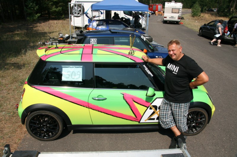Um nicht allein mit dem MINI an den Start zu gehen haben wir einen "alten" MINI Fuchs als Verstärkung geholt. "Realdag", der zwar hier fleißig mitliest aber mehr im MINI Powerforum unterwegs ist. Slalom ist für ihn noch etwas neu, aber auf Strecken wie z.B. dem Spreewaldring hat er seinen Cooper S das "Laufen" beigebracht. Bis auf einige Details sind beide MINIs gleich vorbereitet.