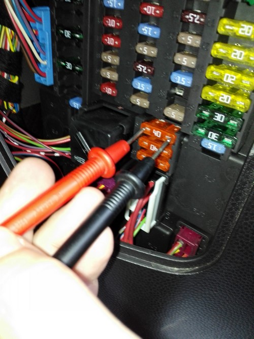 Und einen Spannungsaball an einer 40A Sicherung (also ca. 0 Ohm) wird man dort auch nicht messen, mit oder ohne Verbrauchern.