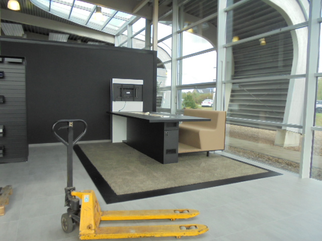 Der Hubwagen sieht aber schon gebraucht aus. Head Scratch