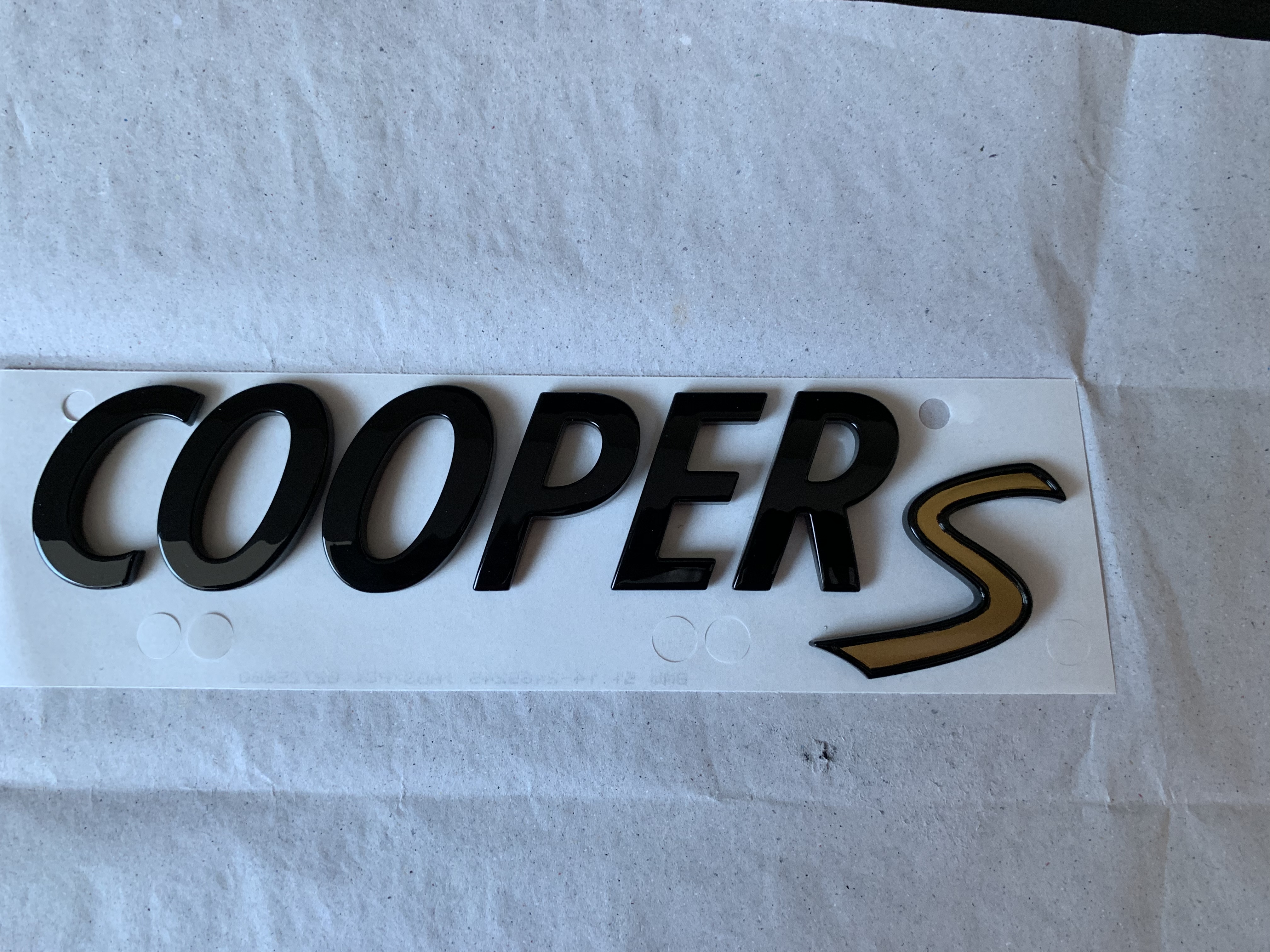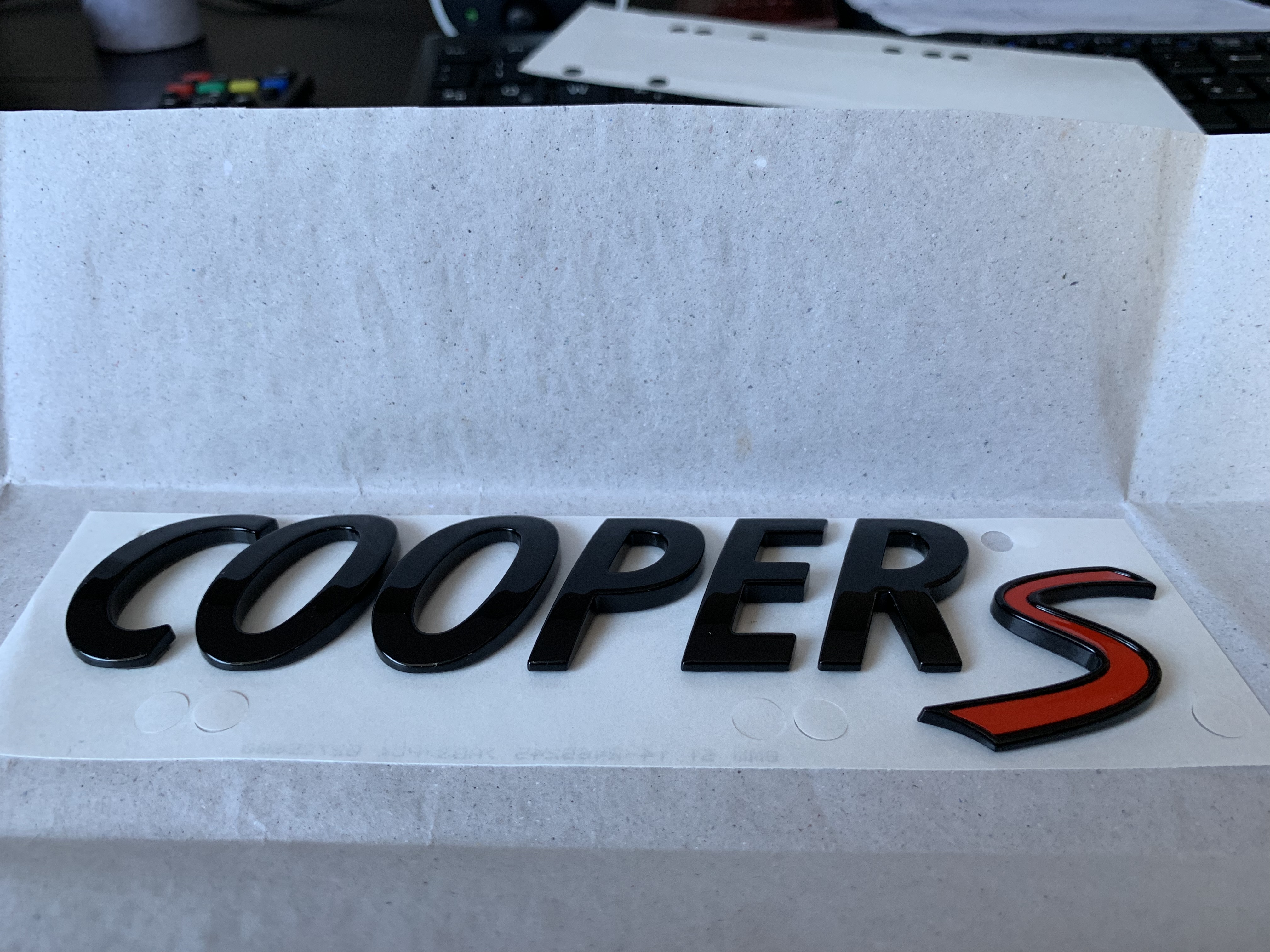 Und inzwischen gibt es auch das MINI-Logo für vorn und hinten in schwarz und die Modell/Motoren-Schriftzüge.