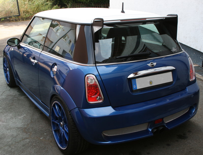 Ja, wagenfarbe ist viiel besser als schwarz. Da ich in meinem Fall alles Chrom an dem Kleinen "verbannt" habe, wären die SW-Ringe in Chrom, nicht so ansprechend - finde aber z.B. einen R53 in "Graphitgrau" und alles mit Chrom auch nett.