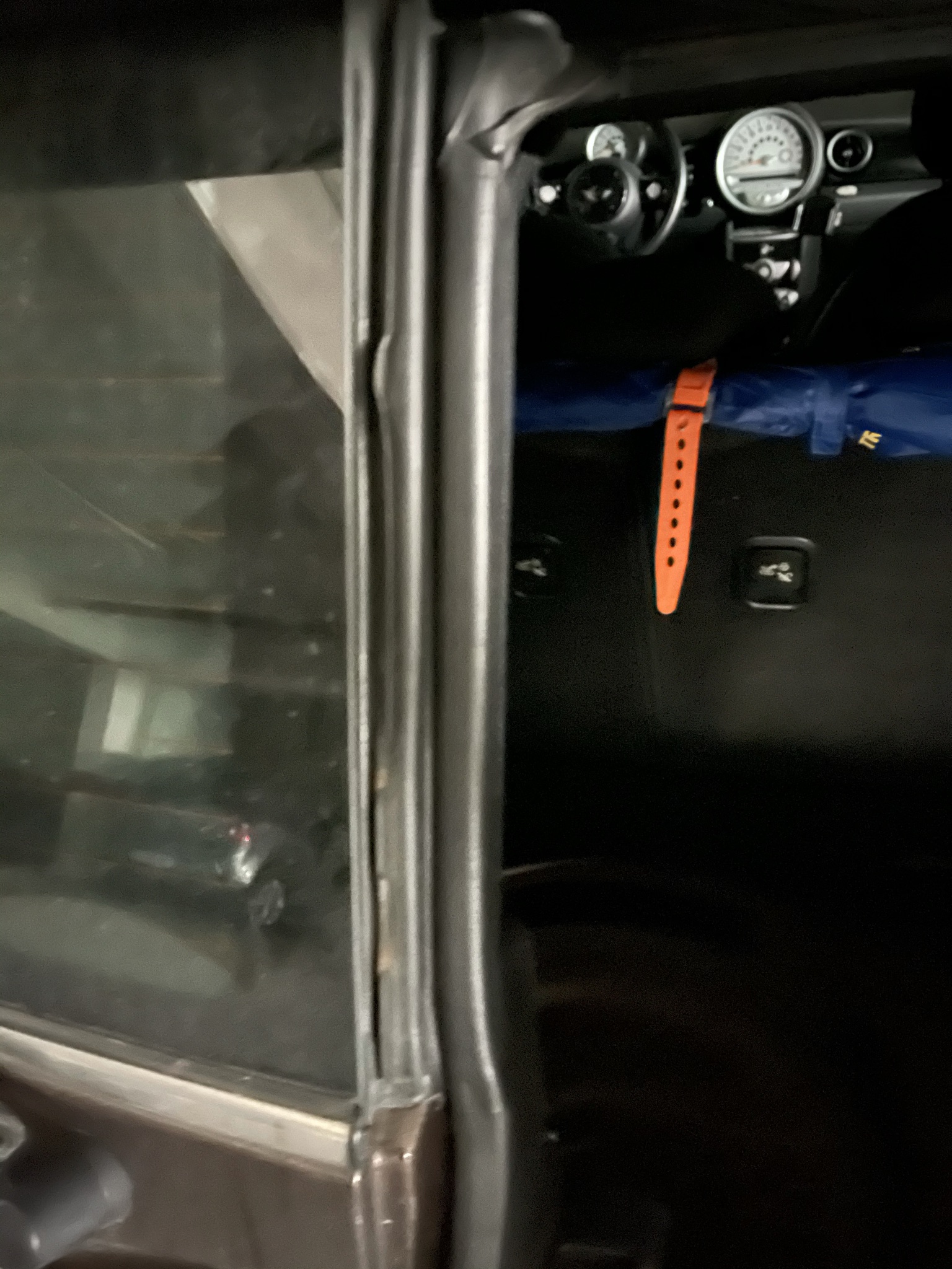 Es sah auf Anhieb so aus, als käme es von der linken Seite, also dem langen Seitenfenster. Die Dichtung sieht allerdings sauber aus bei mir, nicht verprfiemelt oder wellig.