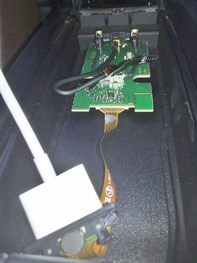 unser Clubby hatte beim Kauf einen Snap-In Adapter für iPhone 4. Mehr als kaputtgehen kann er ja nicht, dachte ich und habe das den Adapter aufgeschraubt, die Platine herausgenommen und in der Mittelkonsole angeschlossen. Man muss alle Federn herausnehmen, sonst hält das Ganze nicht auf den Steckverbindungen. Den Lüfter habe ich abgeklemmt.