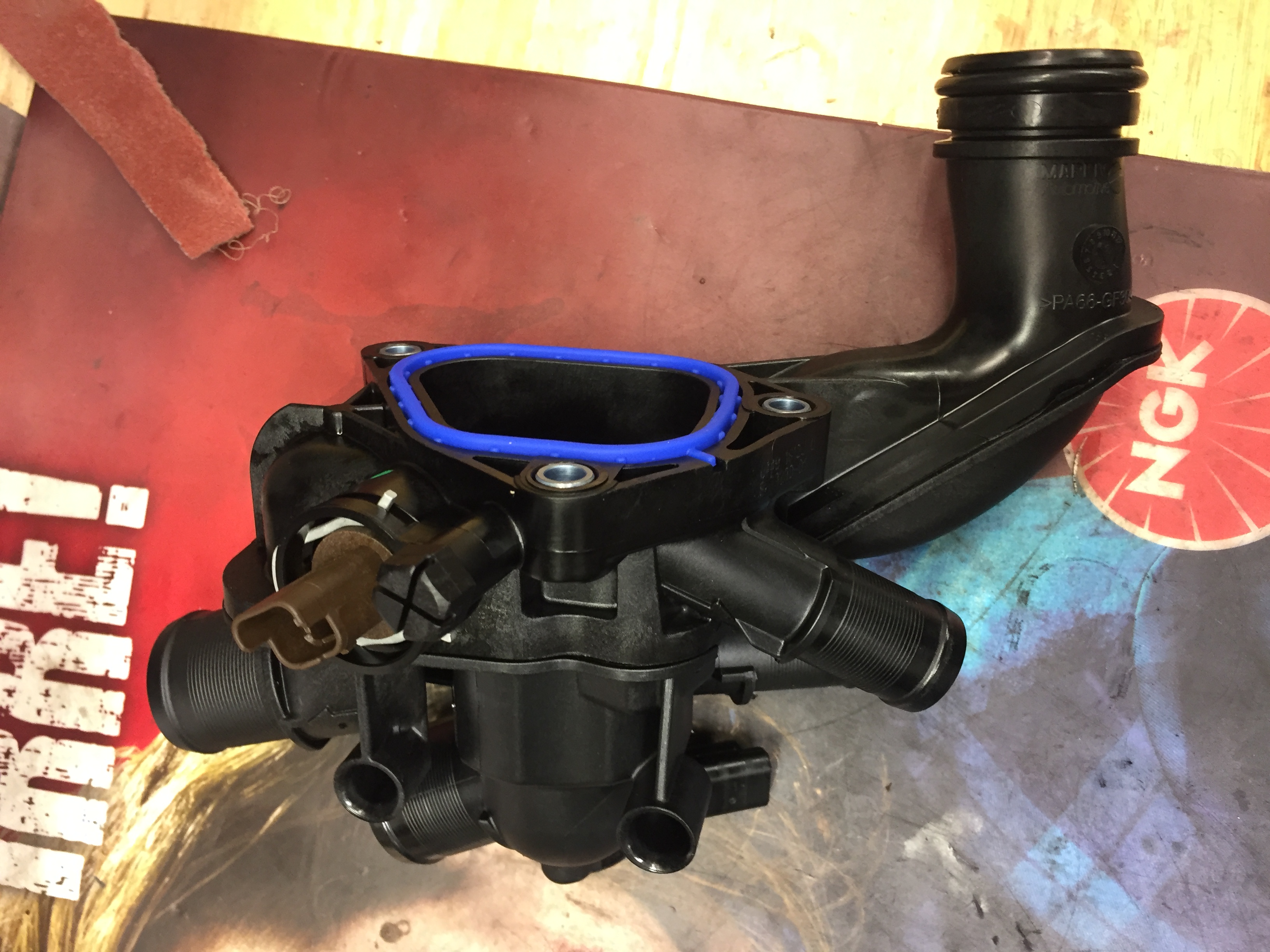 Und der Form halber, hier noch Pics des neuen Themosstatgehäuses, wobei die Reparatur bereits Ende November letztes Jahr durchgeführt wurde.