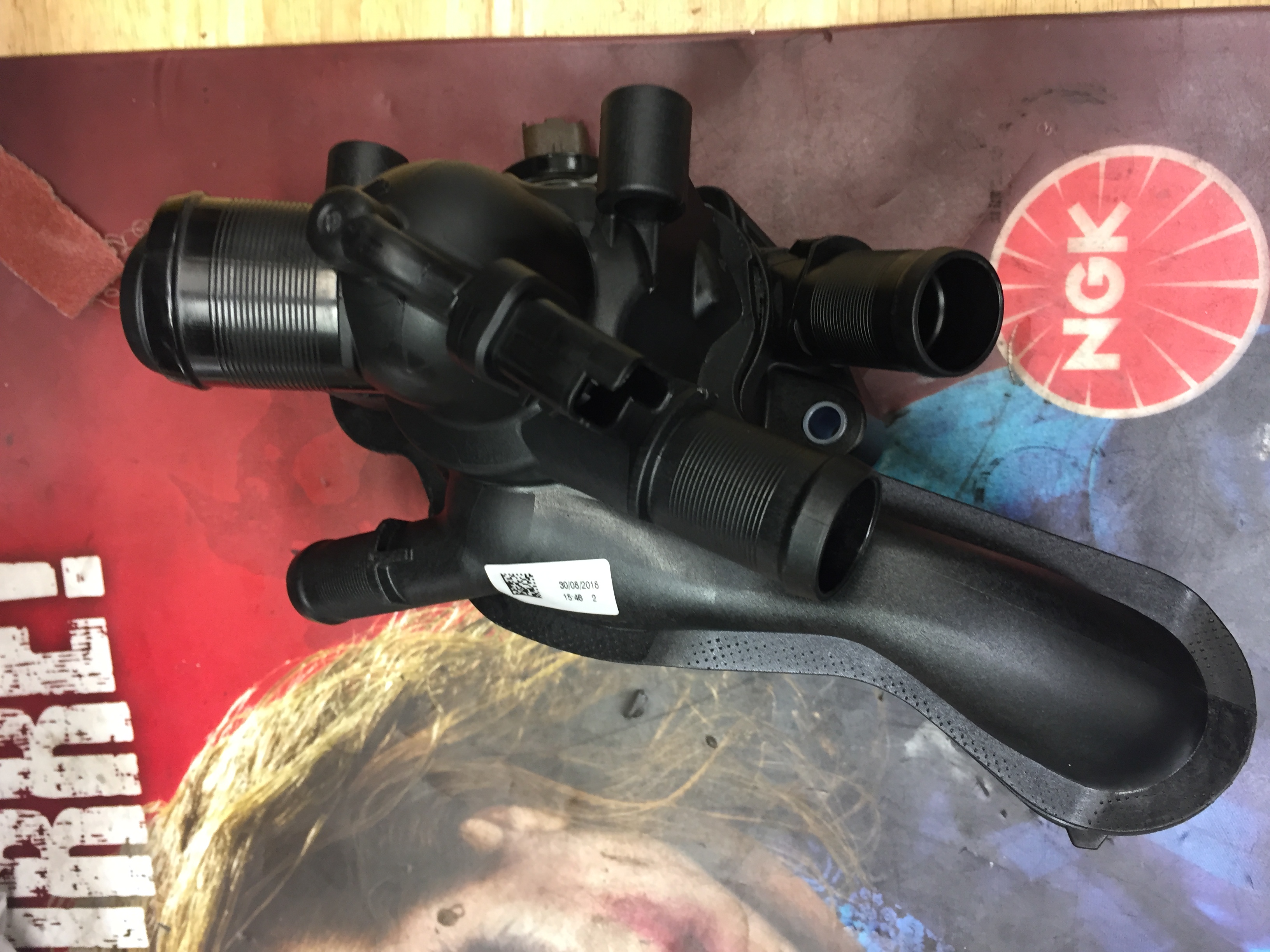Und der Form halber, hier noch Pics des neuen Themosstatgehäuses, wobei die Reparatur bereits Ende November letztes Jahr durchgeführt wurde.