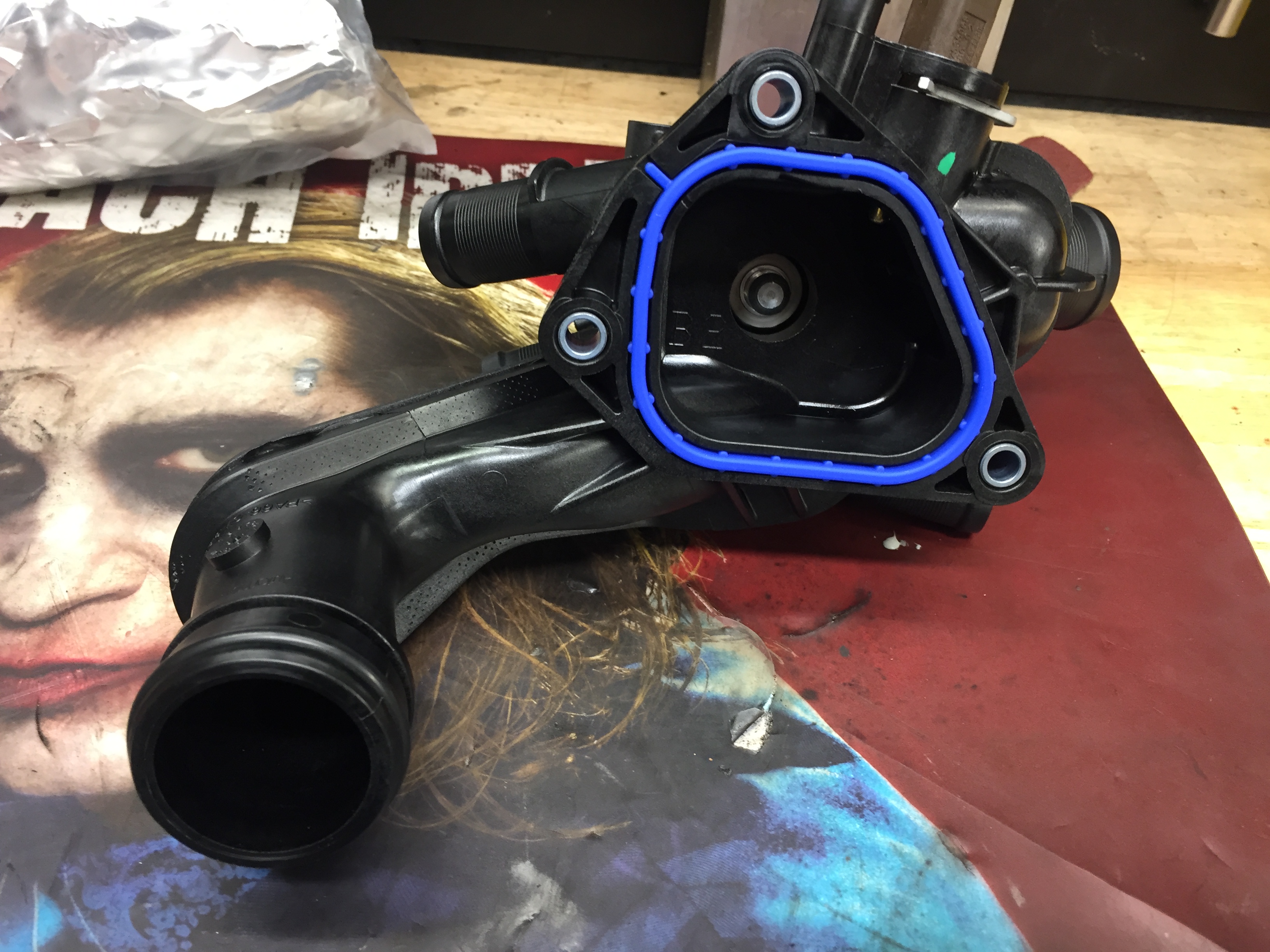 Und der Form halber, hier noch Pics des neuen Themosstatgehäuses, wobei die Reparatur bereits Ende November letztes Jahr durchgeführt wurde.